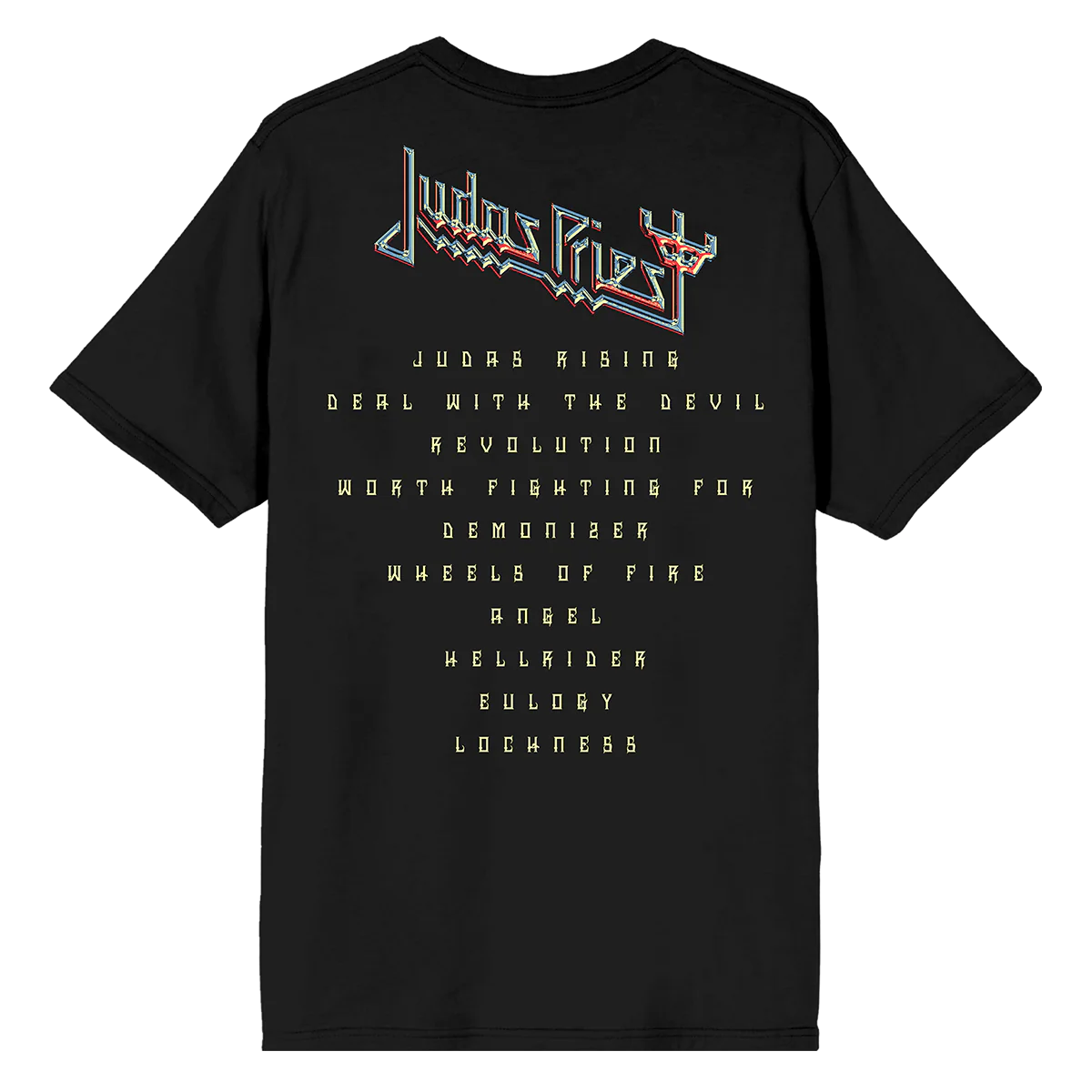 The Angel of Retribution Tee by Judas Priest features custom artwork from the original Angel of Retribution album cover on the front and the album tracklist on the back of a 100% cotton tee.